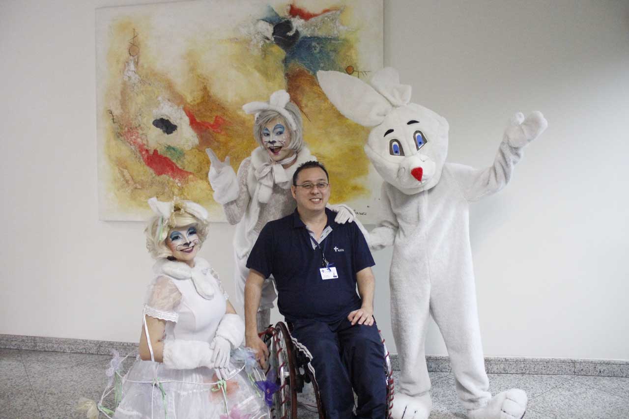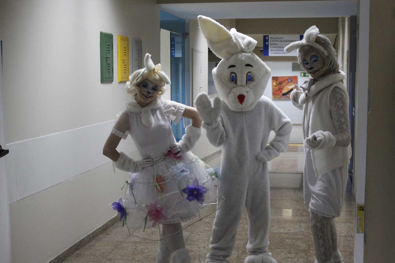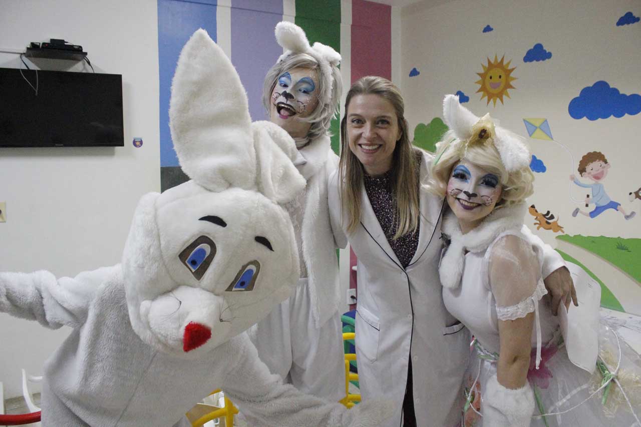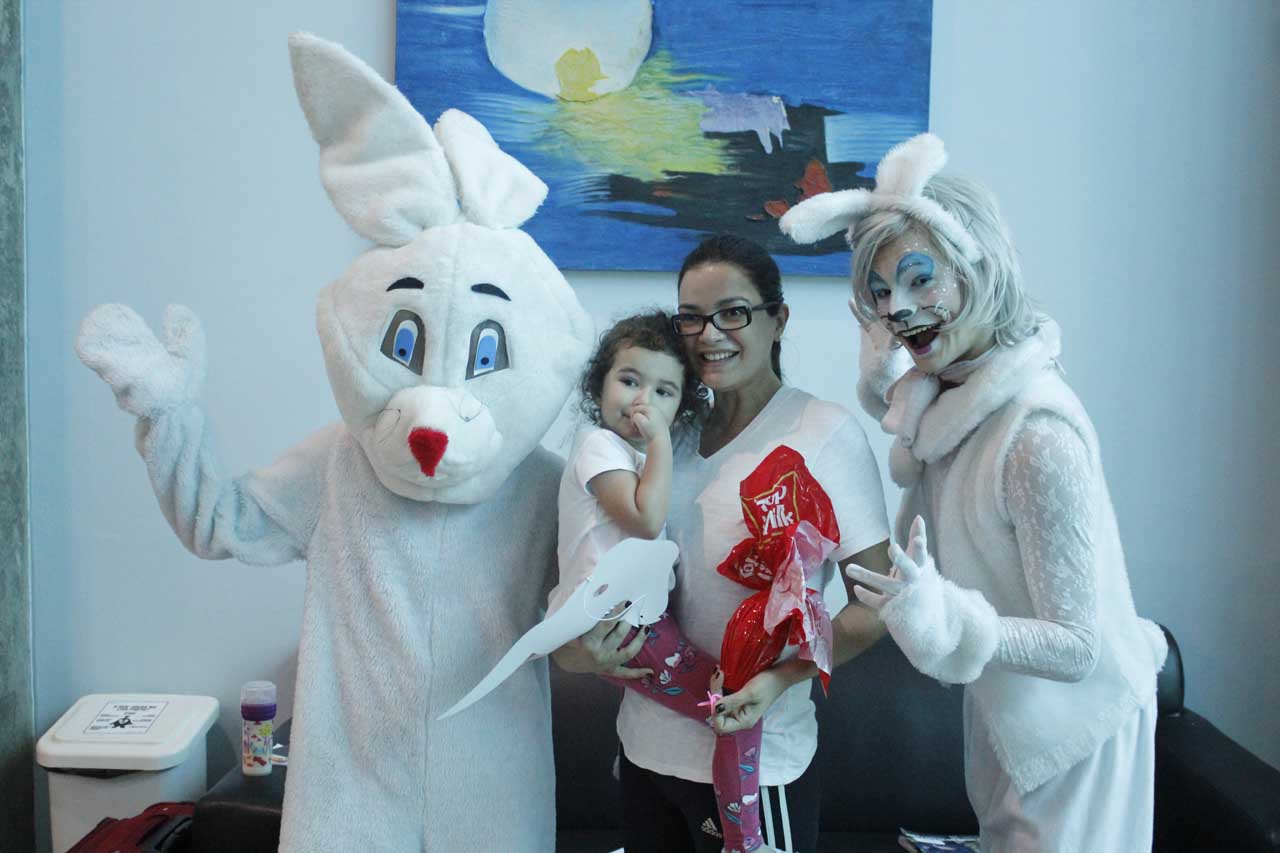 Fernanda Carvalho é mãe da pequena Sophia, de 3 anos, que ficou curiosa com a movimentação no corredor da Pediatria. Quando se deparou com o coelho da Páscoa, o sorriso no rosto ficou evidente. “Ela gostou tanto que quis dar um abraço no coelho para agradecer. Muito legal a presença deles aqui. Quando ela viu, parou até de chorar”, comentou a mãe.