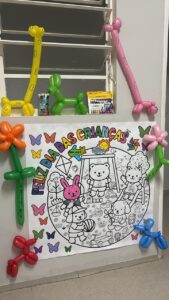 “A humanização é um tema muito importante dentro do hospital. A gente busca constantemente oferecer um ambiente menos traumático para a criança. Aqui no Austa Hospital, esse trabalho acontece durante todo o ano. E hoje, de forma especial, realizamos uma festa para o Dia das Crianças, com entrega de livrinhos de colorir, giz de cera e algumas guloseimas, para tornar o ambiente mais leve, que é a forma como a criança leva a vida”, explica Helid.