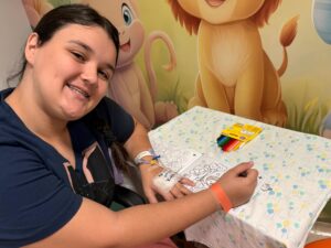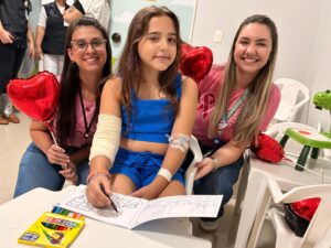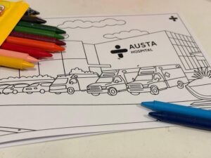 A ação apresentou o livro de colorir do Austa, desenvolvido especialmente para os pequenos pacientes. As ilustrações mostram o cotidiano do hospital de forma lúdica e convidam as crianças a enxergarem o ambiente do tratamento com mais leveza e alegria.