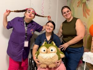 O clima de descontração também contagiou os profissionais de saúde, que entraram na brincadeira e trocaram os uniformes sérios por meias coloridas e divertidas, reforçando a leveza e a proximidade que marcam o cuidado no dia a dia do hospital.