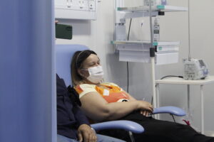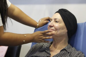 Um dos momentos mais marcantes da campanha foi um dia especial preparado para as pacientes da Oncologia, com café da manhã, música ao vivo com voluntários e momentos de beleza e autocuidado. As pacientes participaram de sessões de maquiagem e cuidados estéticos, vivenciando uma experiência leve e afetiva em meio ao tratamento.